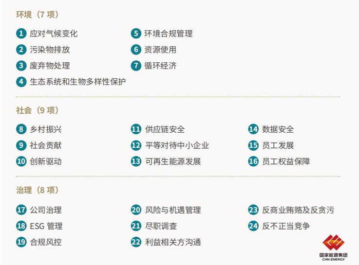 基于联交所、深交所关于可持续发展信息披露的监管指引,结合行业相关政策法规、资本市场评级要求、行业发展趋势以及公司发展战略等关键事项,充分考虑前瞻性、相关性和关注度,识别出24项议题。